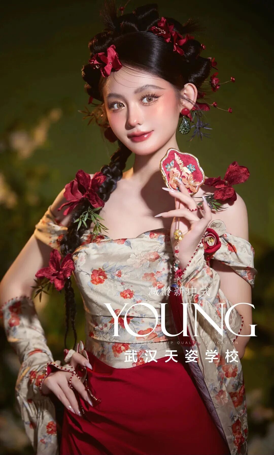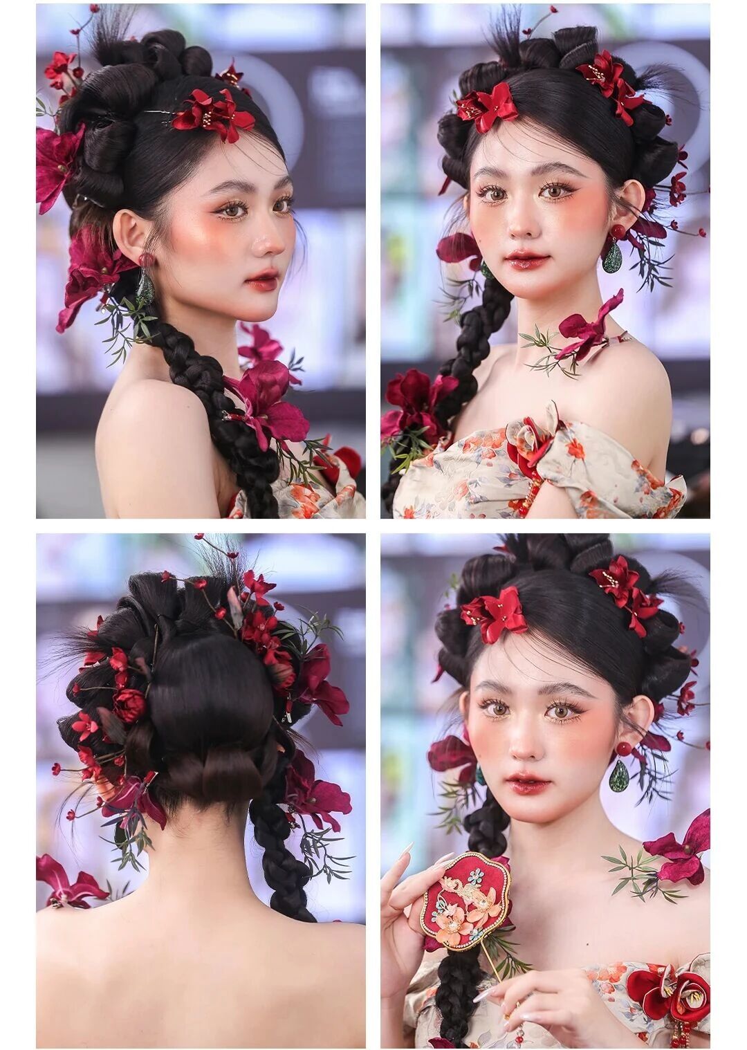 小众红色系敬酒服妆造, 复古干花点缀, 少女感满满, 天姿学校美妆造型。