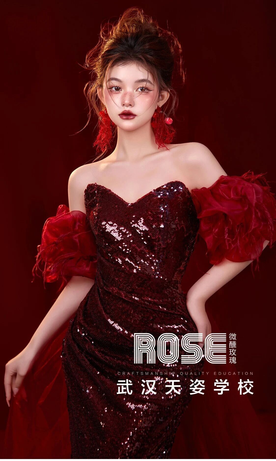 美炸天的璀璨酒红亮片鱼尾礼服,