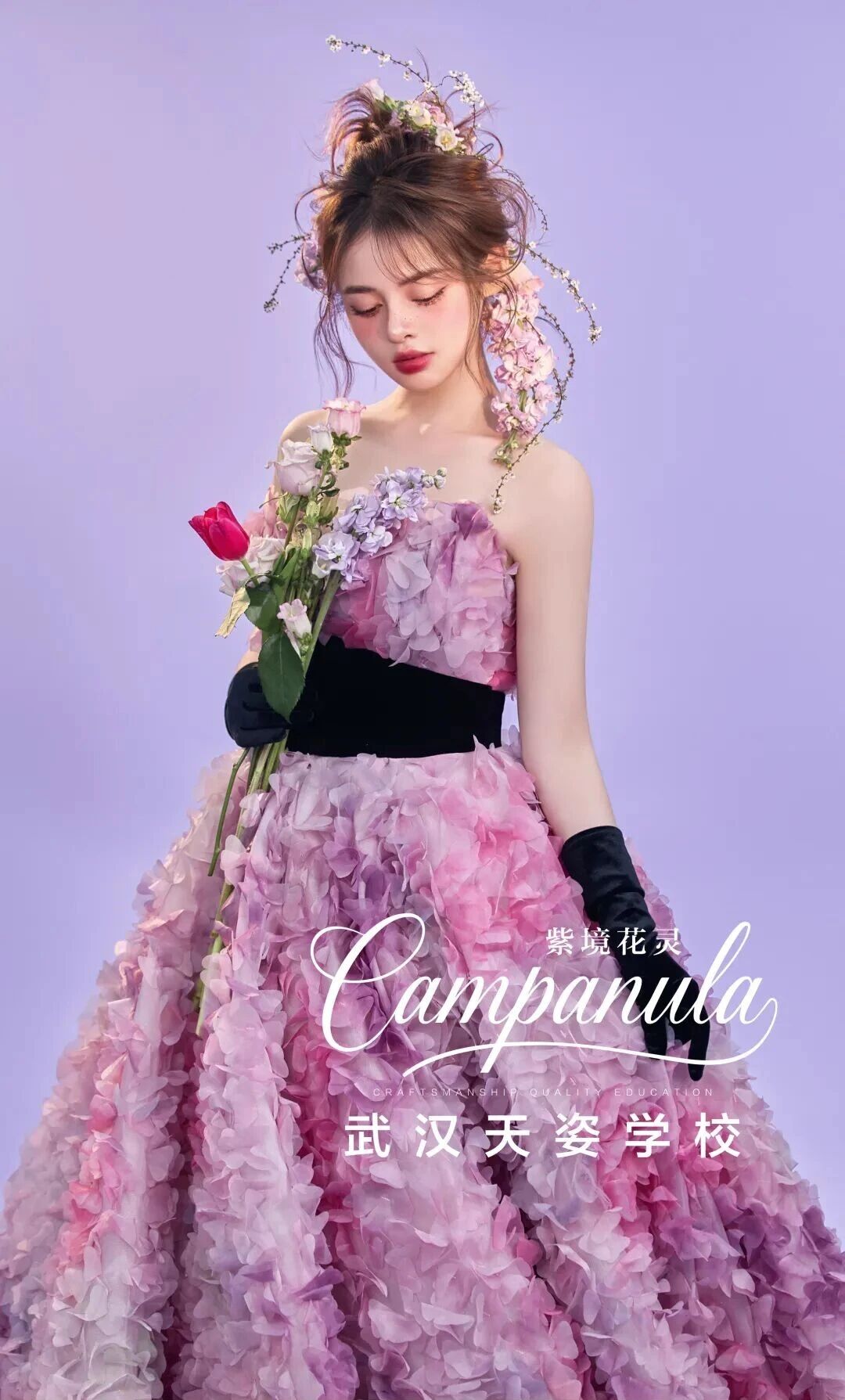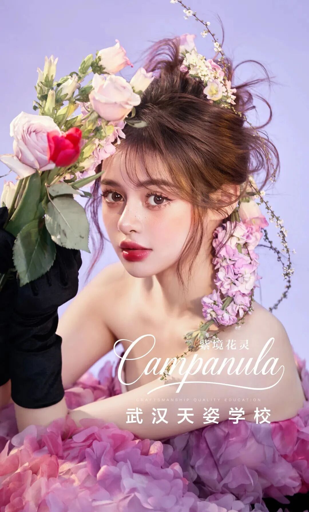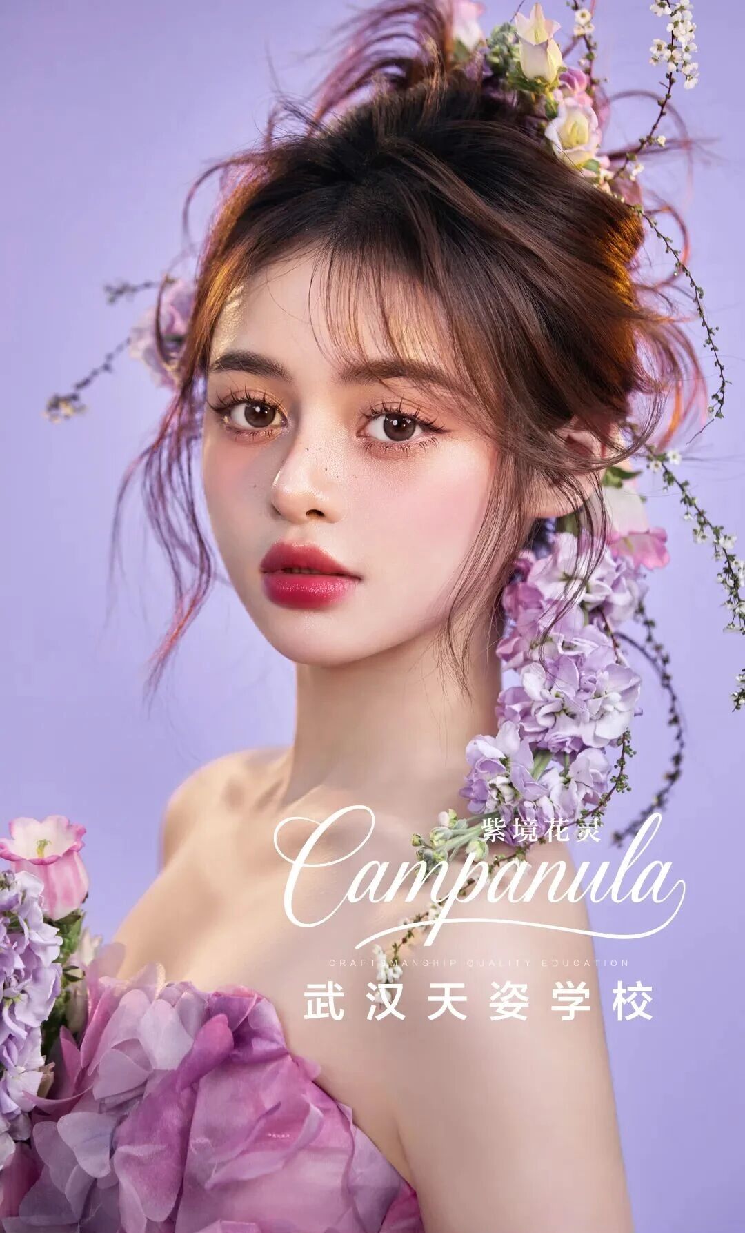 🌸风铃花和郁金香的搭配,仙气清透少女感✨,天姿学校美妆样片。